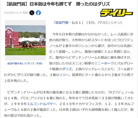 【過酷な環境・重い馬場】世界最高峰レース『凱旋門賞』が行われ、日本馬は5着が精一杯で···